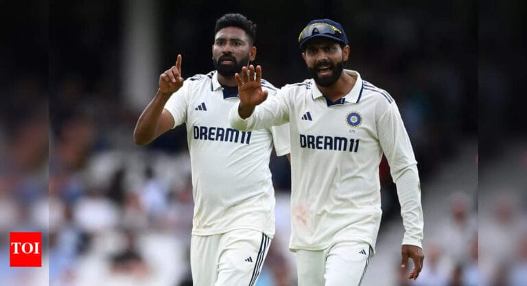 Mohammed Siraj and Ravindra Jadeja appeal to Shubman Gill for a review during day four of the Fifth Test Match …