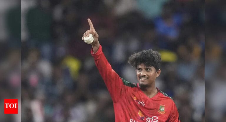 Mahedi Hasan celebrates the wicket of Pathum Nissanka during the third T20 between Sri Lanka and Bangladesh in Colombo. (AP) …
