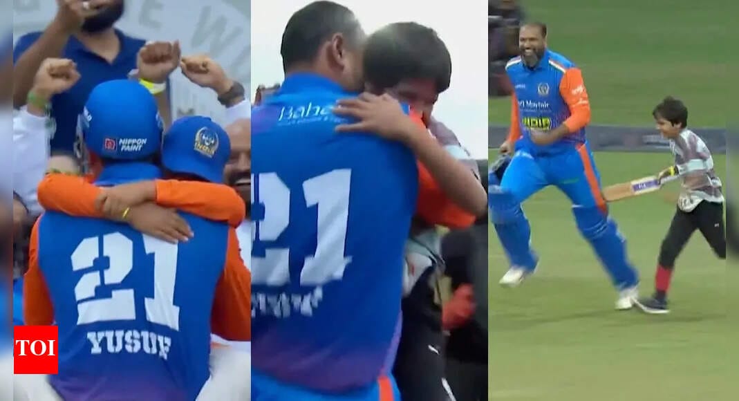 India Champions secured a thrilling semi-final spot in the World Championship of Legends at Grace Road cricket ground in Leicester, England. They defeated West Indies Champions by chasing down 145 runs in 14.1 overs. Stuart Binny’s unbeaten 50 and Yusuf Pathan‘s match-winning six sealed the victory, with Pathan celebrating emotionally by hugging his kids at the boundary rope.The defending champions India faced elimination pressure but showed great character. After winning the toss, India’s bowling attack dominated early, reducing West Indies to 43/5. Kieron Pollard fought back with a stunning 74 not out off 43 balls, including 8 sixes and 3 fours, helping West Indies reach 144-9.India’s bowlers were impressive throughout. Piyush Chawla was the star, taking 3 wickets for just 18 runs. Varun Aaron and Stuart Binny grabbed two wickets each, while Pawan Negi took one.The chase wasn’t smooth sailing for India. They lost four early wickets for 52 runs. Then came a game-changing partnership between Binny and captain Yuvraj Singh. They added 66 runs in just 27 balls, with Yuvraj scoring a quick 21 off 11 balls.After Yuvraj’s exit, Yusuf Pathan joined Binny for the final assault. The pair smashed 30 runs in mere 8 balls. Binny ended with 50 not out from 21 balls, while Pathan blasted 21 not out in 7 balls. Earlier, Shikhar Dhawan had contributed 25 runs.Despite Dwayne Smith and Dwayne Bravo picking up two wickets each for West Indies, they couldn’t stop India’s determined charge to the semi-finals.